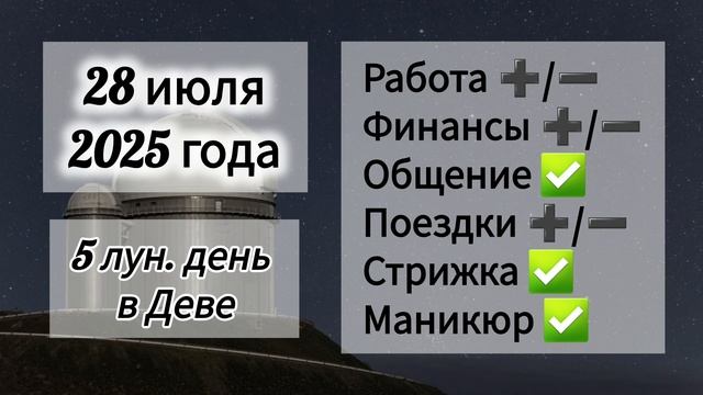 Лунный день 28 июля 2025 года