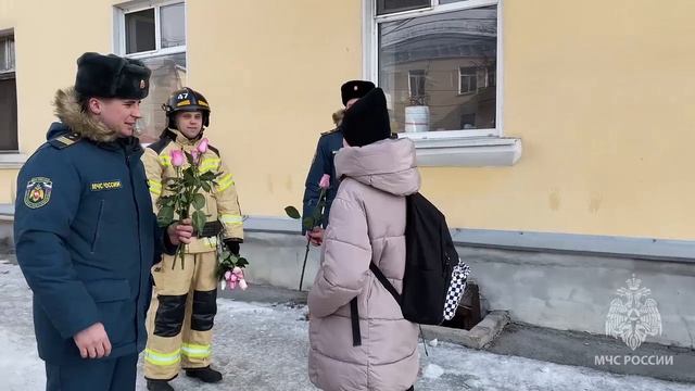 Добрые слова, улыбки и цветы прекрасным дамам подарили сотрудники Миасского пожарно-спасательного гарнизона! ?Специалисты чрезвычайного ведомства вышли на улицы города и поздравили жительниц с замечательным праздником.