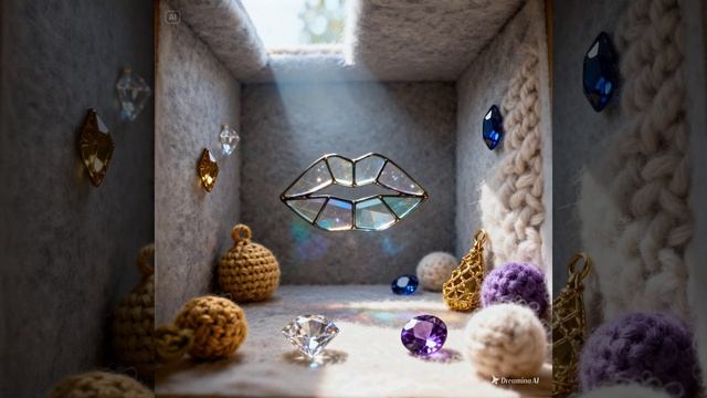 dreamina-2026-02-08-4428-полупрозрачные витражные губы в центре м...
