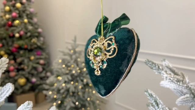 Ёлочная игрушка СЕРДЕЧКО - КУОРЕ ДИ ВЕЛЛЮТО, текстиль, изумрудная, 11 см, 726220-3