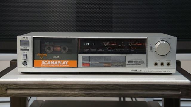 Lo-D Dacking-77 (Lo-D D-77) На видео проверяю деку на запись и воспроизведение. Дека с хорошим, высококачественным звучанием, красивыми стрелочными индикаторами. В данном аппарате очень удобно менять пассики, это наверное самый удобный в этом плане аппарат, конструкторы просто молодцы. На этом кассетнике сохранена даже родная рекламная наклейка. Производитель Япония. Модель 1981 года. DRPS/オートDRPSなどの機能やドルビーCを搭載したカセットデッキ。 ノイズリダクションとして、ドルビーBの約2倍のノイズ低減効果を持つドルビーCタイプを搭載しています。 また、ドルビーBタイプも搭載しています。 全16曲早送り頭出し演奏が可能なSCANAPLAYを搭載しています。 この機能では、曲の頭を約10秒演奏してすぐ次の曲まで早送りし、また頭出し演奏を繰り返します。この動作を全16曲を自動的に行います。また、16曲以内のメモリー選曲も可能です。 今聴いている曲から、前後9曲の頭出しが可能なDRPSを搭載しています。 また、ミュージックテープのラベルに記載されている曲順通りに頭出しができるオートDRPSも搭載しています。 コンピューター・コントロールシステムを搭載しています。 コンピューターメモリーリワインド機構を搭載しており、テープカウンターを操作することなく、最後にPLAYボタンを押したテープ位置まで巻戻すことができます。 また、コンピューターオートRec Mute機構やオートリワインドプレイ・ストップ機構、ワンアクションタイマーON/OFFスイッチ、タイマーアラーム機構などの機能を搭載しています。 キャプスタン用、リール用にそれぞれ電子制御DCモーターを搭載した2モーターメカニズムを採用しています。 電子カウンターを搭載しています。 VUメーターを搭載しています。 リモコン端子を搭載しています。 型式 カセットデッキ ヘッド 録再:メタルS.L.(スーパーライフ)ヘッド 消去:ダブルギャップフェライトヘッド モーター 電子制御DCモーターx2 ワウ・フラッター 0.035%(WRMS) ±0.08%(W・Peak) 周波数特性(EIAJ) 20Hz~19kHz/30Hz~17kHz ±3dB(メタル) 20Hz~18kHz/30Hz~16kHz ±3dB(クロム) 20Hz~17kHz/30Hz~16kHz ±3dB(ノーマル) SN比(メタルテープ) 3%歪レベル、聴感補正: 74dB(Dolby C NR on) 68dB(Dolby B NR on) 60dB(Dolby NR off) EIAJ: 70dB(Dolby C NR on) 64dB(Dolby B NR on) 56dB(Dolby NR off) 入力感度/インピーダンス Line in:80mV/50kΩ以上 Mic:0.3mV/300Ω~5kΩ適合 出力インピーダンス(負荷) Line out:50kΩ以上 Headphone:8Ω~2kΩ 電源電圧 AC100V、50Hz/60Hz 消費電力 18W 外形寸法 幅435x高さ110x奥行282mm 重量 4.8kg 付属 USピンコードx2 ヘッドクリーニング棒
