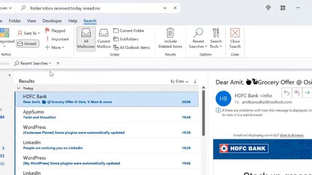It is somehow very painful to click every inbox one by one and find all unread emails received today in all your inboxes. There are a couple of methods you can use to merge and combine inbox in the Outlook application. 1. Use the Search Bar smart technic 2. Use Macros to Create Unified Inbox View The below link will walk you to the written tutorial, in case you prefer reading over watching the video: https://mailsmartly.com/merge-outlook-accounts/ Use the below code as Macros to get all inboxes in One account ----------------------------------------------------------------------------------------------------------------------- Sub UnifiedInbox() Dim myOlApp As New Outlook.Application txtSearch = "folder:inbox received:today isread:no" myOlApp.ActiveExplorer.Search txtSearch, olSearchScopeAllFolders Set myOlApp = Nothing End Sub ----------------------------------------------------------------------------------------------------------------------- I hope you will find it helpful. ☕ If you find my Microsoft Outlook videos useful and would like to support me, you can buy me a coffee - https://www.buymeacoffee.com/AmitBansal Subscribe to get awesome Microsoft Outlook Tips every week: https://www.youtube.com/channel/UCARlPrQYhr-fzBZqj1Yf7VA To Get Free Microsoft Outlook Keyboard Shortcut PDF file visit and Subscribe. https://mailsmartly.com/ #Outlook #Microsoft #Microsoft365 #outlooktips #officetips #techforall #techforall2019 #tutorial #tutorialyoutube #microsoftoffice #microsoftoffice365 #microsoftoutlook #outlook365 #outlooktutorial #outlooktutorial #outlook2016 #outlook2019 #outlook2022 #office2010 #office2013 #office2016 #office2019 And make sure you subscribe to my channel! - EQUIPMENT USED -------------------------------- ○ My camera – https://amzn.to/3CwIoER ○ Microphone - https://amzn.to/3Cg5YVW ○ Camera tripod – https://amzn.to/42l7TmJ ○ Studio lights - https://amzn.to/3WNUSBb ○ Dual monitor mount stand - https://amzn.to/43pOfr5 ○ Web camera – https://amzn.to/45LT9Al ○ Shock mount - https://amzn.to/3OXfHbj ○ Boom Arm - https://amzn.to/3MV7FgE DISCLAIMER: Links included in this description might be affiliate links. If you purchase a product or service with the links I provide, I may receive a small commission. There is no additional charge to you! Thank you for supporting my channel, so I can continue to provide you with free content each week!