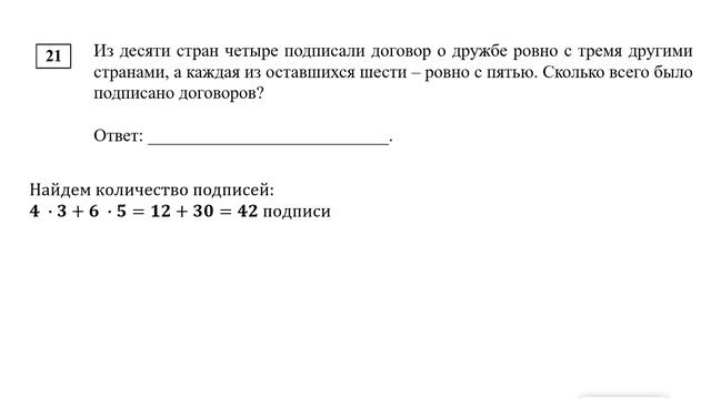 ЕГЭ. Математика. Базовый уровень. Задание 21. Из десяти стран четыре подписали договор о дружбе