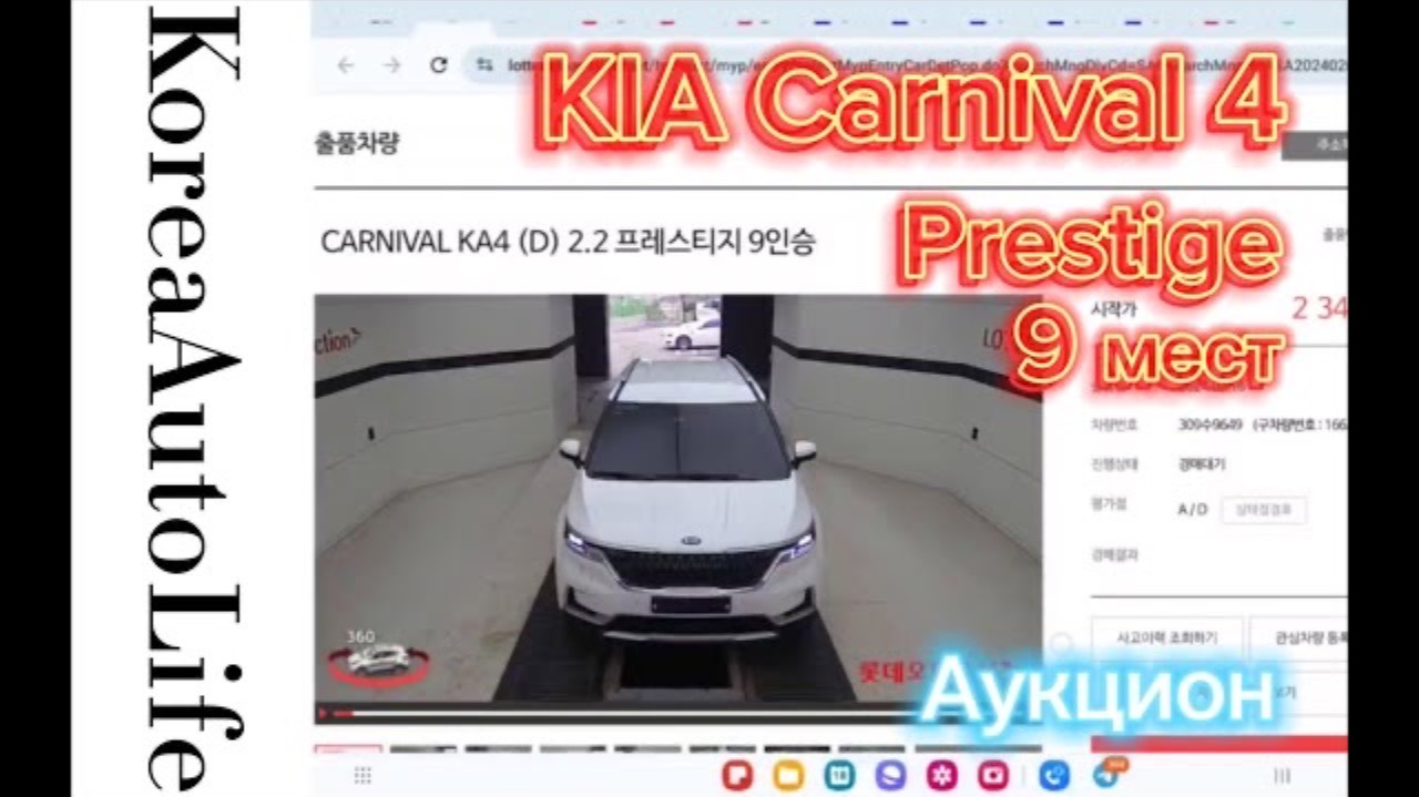 317 Покупка автомобиля с аукциона в Корее KIA Carnival 4 Prestige 9 мест