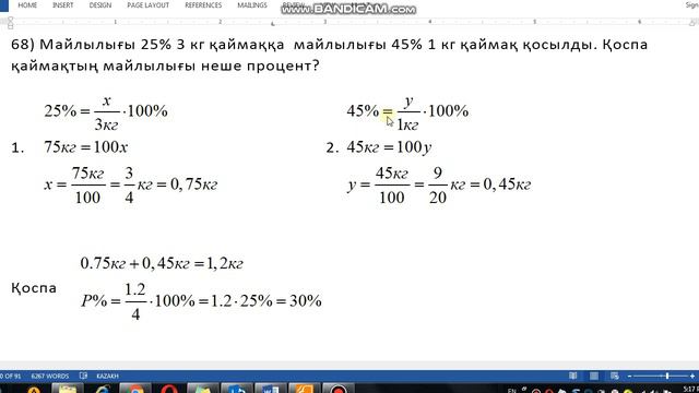 Математика 6-сынып 68-сынып Майлылығы 25% 3 кг қаймаққа майлылығы 45% 1 кг қаймақ қосылды. Қоспа қ