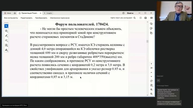 Ответы на вопросы пользователей: - Куда при генерации модели со слоистыми подбалками, пропадают свайные пеньки; - Куда при генерации модели делась поверхностная опора; - Что понимается под приопорной зоной при конструктивном расчете стержневых элементов в СтаДиконе; - Возможно ли внесение результатов расчета на ветер по приложению М СП 20.13330 непосредственно в КЭ модель, по типу узловых нагрузок, как при старом расчете на пульсационные компоненты ветра;