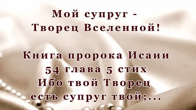 Мой супруг - Творец Вселенной! Пророк Исаия 54 глава 5 стих. Не разъединить, ни водой не разлить.