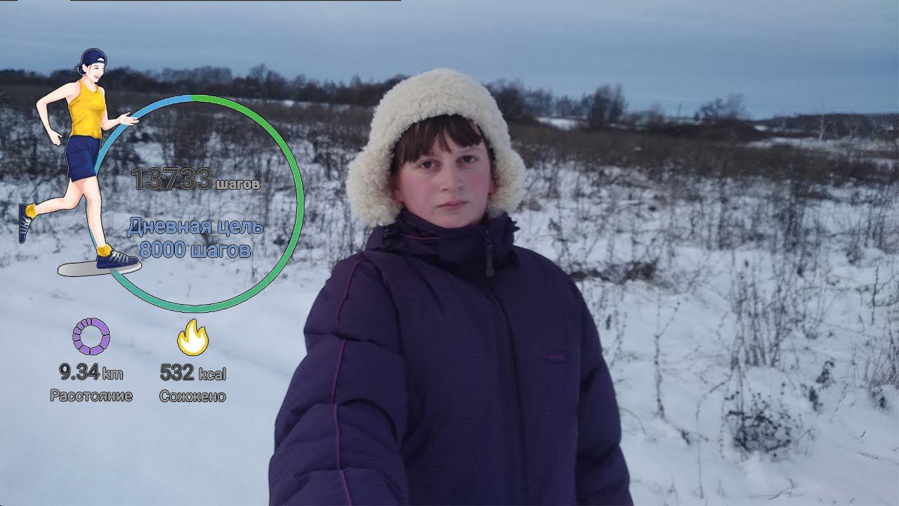 Зимняя прогулка 9,34 км по полю. Жена дальнобойщика.