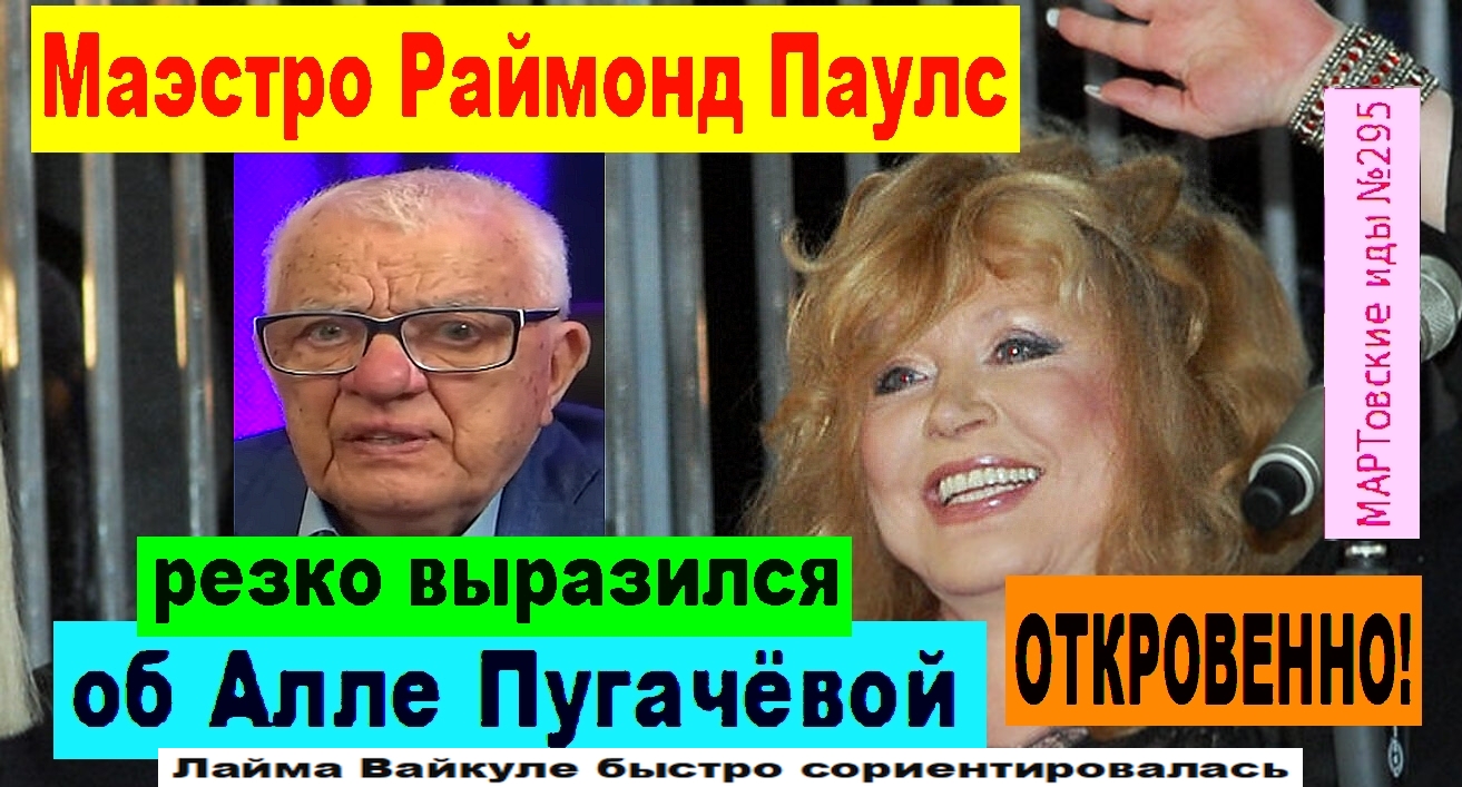 Как пишут СМИ Прибалтики и России, знаменитый композитор, народный артист СССР Раймонд Паулс дал большое и откровенное интервью на русском языке ведущему рижского радио Retro FM — известному латвийскому диджею польского происхождения Эдмунду Кашевскому. Легендарный Маэстро, в частности, затронул непростые отношения с Аллой Борисовной Пугачёвой. Кроме того, Раймонд Валдемарович также рассказал о сотрудничестве с другими артистами, с которыми работал во время своей продолжительной творческой деятельности. Такова тема сегодняшнего выпуска новостей в рамках постоянной рубрики "МАРТовские иды №295". См. видео! Ждём комментарии!