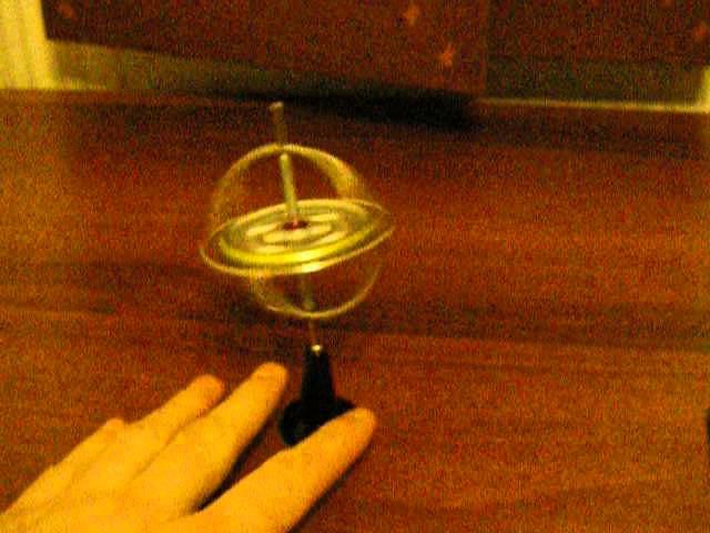 Детская игрушка - гироскоп Подкручиваем, как волчок, в сторону вращения маховика. Если попробовать подкрутить в обратную сторону - идёт в разнос.