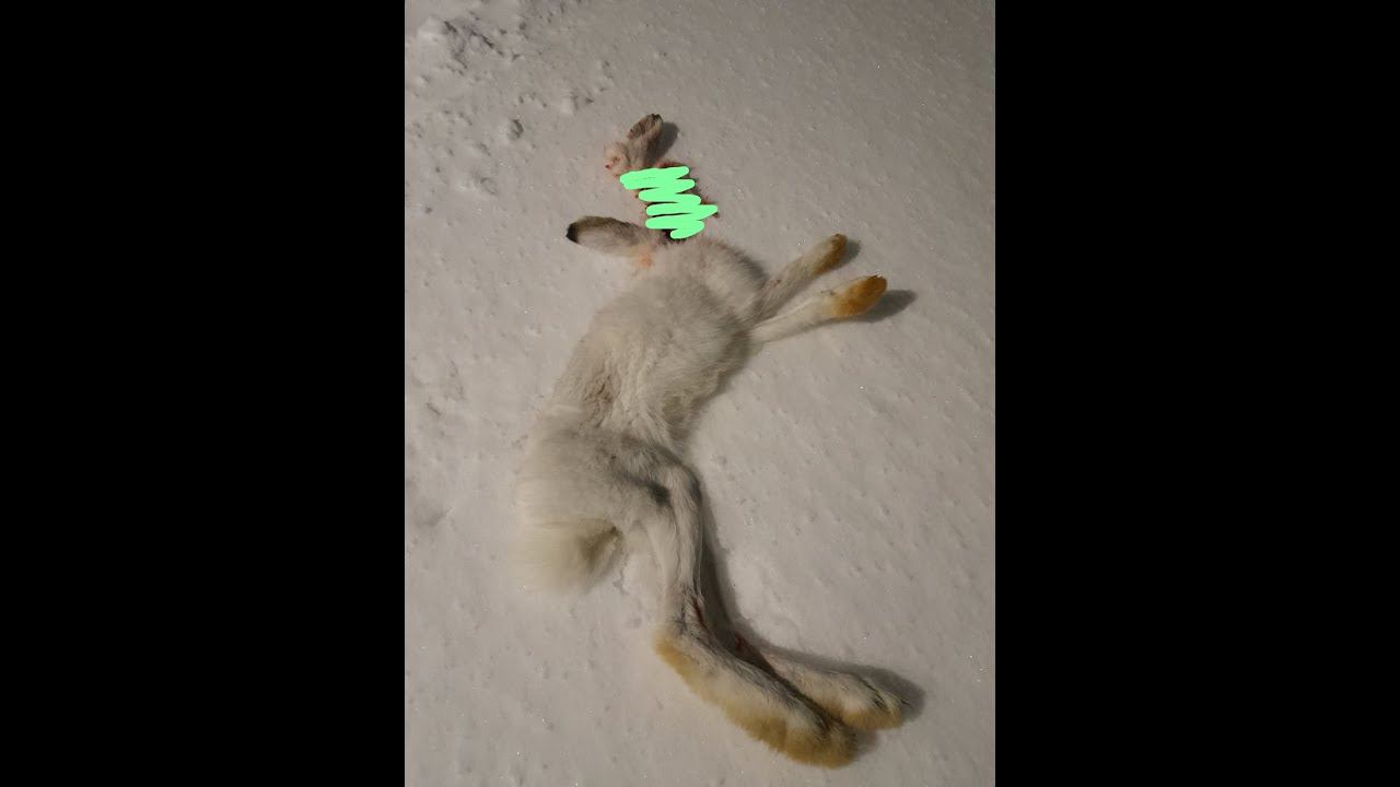 Ждал лисиц на приваде в заброшенной деревне, просидел до пол третьего ночи, но рыжих не было.. Зато пришел косой и стал объедать кору с яблонь. На видео последствия выстрела кажутся фатальными, однако пуля попала в голову и тушка осталась абсолютно целой. Пуля Nosler V-Armageddon, 950 м/с на старте. Для регулирования хищника, если шкурка не важна - идеальный вариант. Для мясных зверей - только в голову, иначе есть нечего будет..