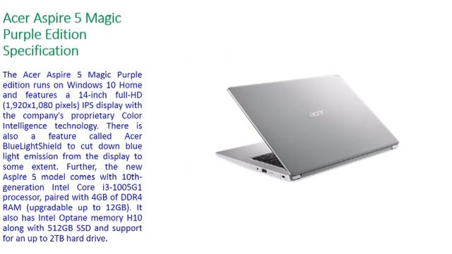 acer aspire 5 magic purple edition with 10th gen intel core i3 processor price and specification
