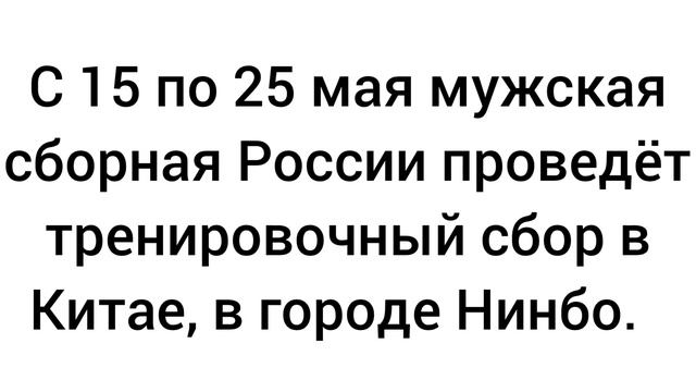 С 15 по 25 мая мужская сборная России проведёт тренировочный сбор в Китае, в городе Нинбо.