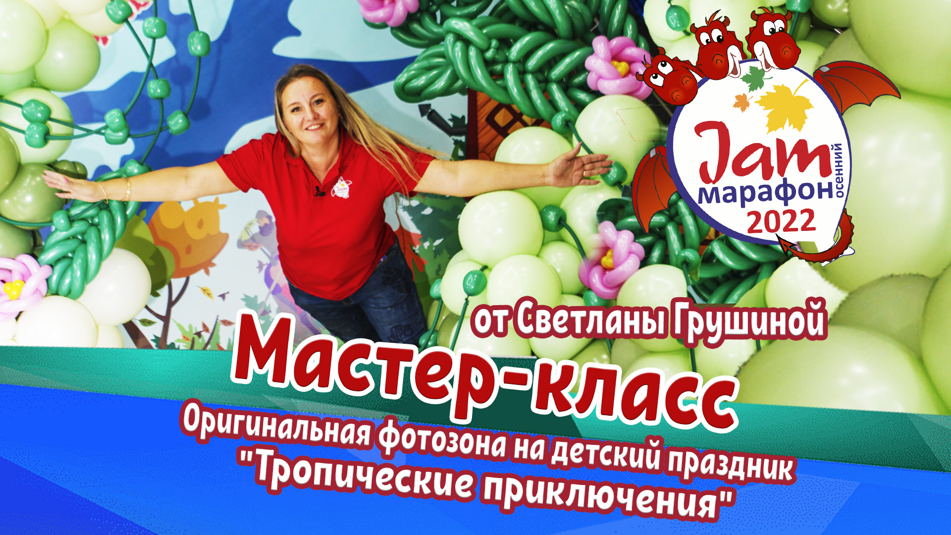 Мастер-Класс "Тропические приключения" со Светланой Грушиной Jam-марафон 2022 ПОДПИСЫВАЙСЯ НА ПраздникМастер! ? Вконтакте https://vk.com/prazdnikmaster ? Яндекс Дзен https://dzen.ru/id/6009520bb877b438555a4b5a ? Youtube https://www.youtube.com/channel/UCNZjl3bmZJWoqpFIGLnDvlQ?sub_confirmation=1 ? Мы Facebook https://www.facebook.com/prazdnikmasterkrd ? TIK TOK https://www.tiktok.com/@prazdnikmaster ? Instagram https://www.instagram.com/prazdnikmaster/ ! Активность канала зависит от лайков и комментариев! Так что если хочешь нам помочь – ты знаешь, что делать. Купить воздушные шары оптом можете на сайте https://prazdnikmaster.ru/catalog/vozdushnye_shary/ Записаться на обучающие мастер – классы можно: Вацап +7 929 843 48 59