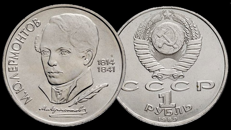Монета 1 рубль СССР 175 лет со дня рождения М. Ю. Лермонтова.