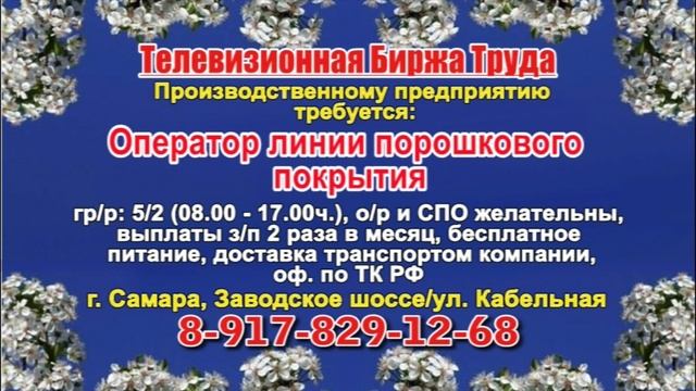Вакансии и телефоны прямых работодателей в специализированной программе по трудоустройству "Телевизионная Биржа Труда" - г.САМАРА, г.ТОЛЬЯТТИ т/к РЕН-ТВ