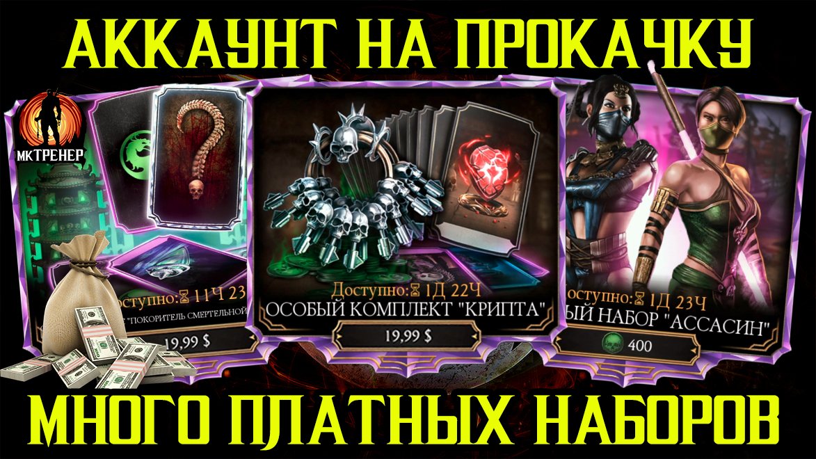 АККАУНТ НА ПРОКАЧКУ И МНОГО ПЛАТНЫХ НАБОРОВ В МОРТАЛ КОМБАТ МОБАЙЛ