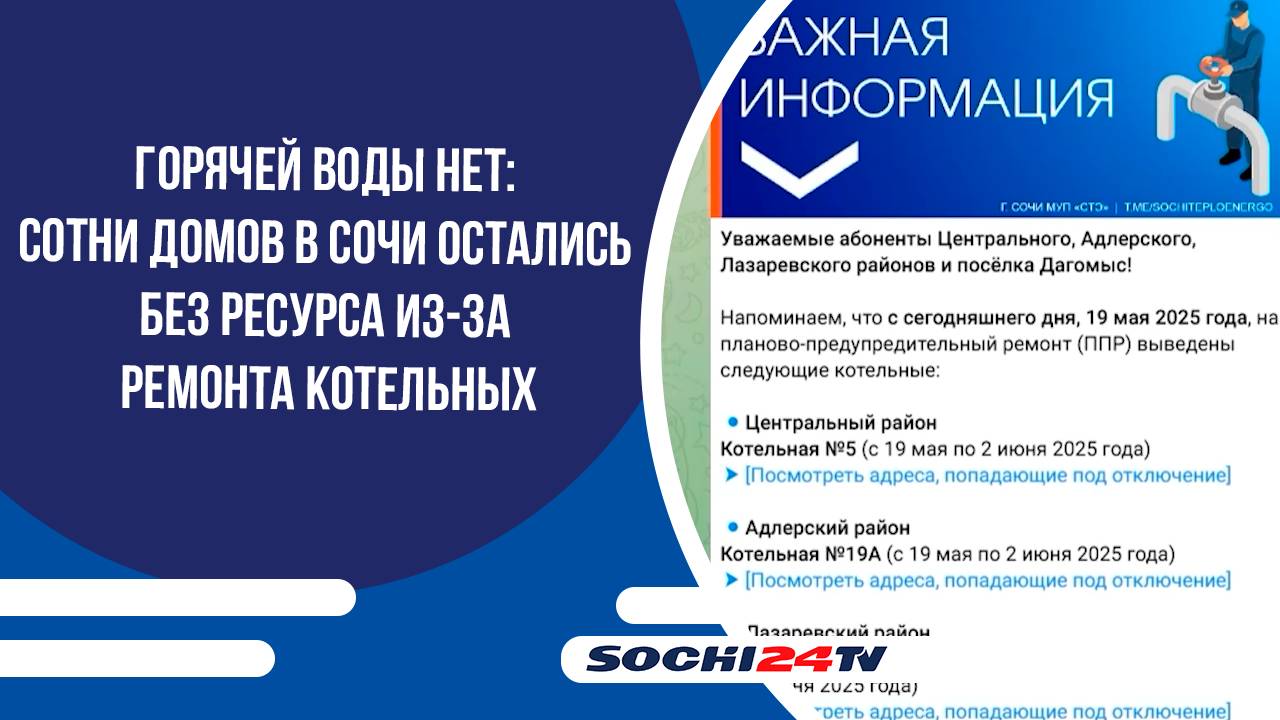 Горячей воды нет: сотни домов в Сочи остались без ресурса из-за ремонта котельных