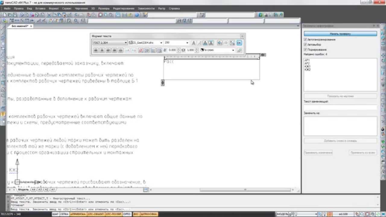 Проверка орфографии в nanoCAD Plus 7