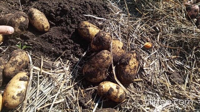 Урожай картофеля с мульчированием, смотрите описание.