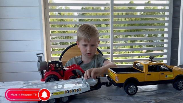 Руслан играет с трактором