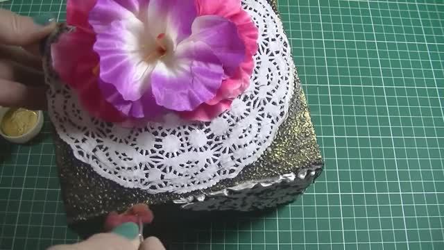 Декупаж картонной коробки красками .