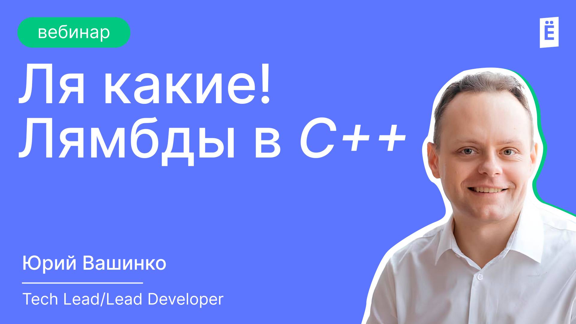 Курс «Разработчик С++20»: https://to.slurm.io/n9o9Og На вебинаре рассмотрим: - Захваты переменных, параметры, возвращаемые значения, типы замыканий. - Лямбды в C++20 и C++23. - Применение в реальных задачах: передача функций в алгоритмы STL, написание компактных колбэков Спикер: Юрий Вашинко, Tech Lead/Lead Developer