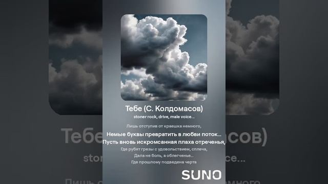 Стоунер рок! Текст - С. Колдомасов Аудио и визуал - Suno AI Стихи: Сергей Колдомасов - "Тебе" (2019/06/14) (на сайте стихи.ру). Никакой вульгарщины или пропаганды, все совпадения чисто совпадения!