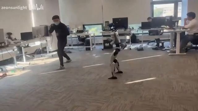 Китайский разработчик управлял роботом и случайно...пнул себя же по шарам. Реакция робота убила