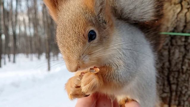 Минус 23 градуса. Кормлю белочку