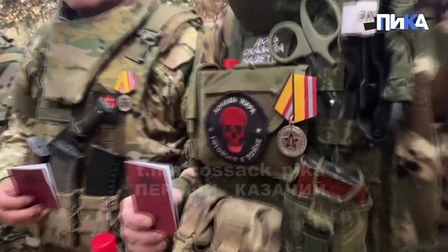 Церемонию награждения на передовой провели комбриг с позывным "Вьюга" и его заместитель с позывным "Барс". Поздравляем воинов-казаков с заслуженными наградами! Любо!
