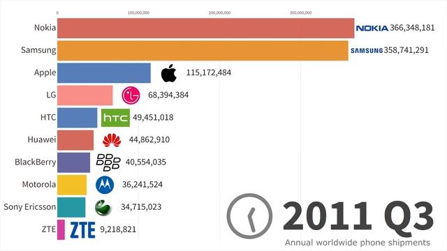 Данные о самых продаваемых мобильных брендах за период с 1996 по 2024 год