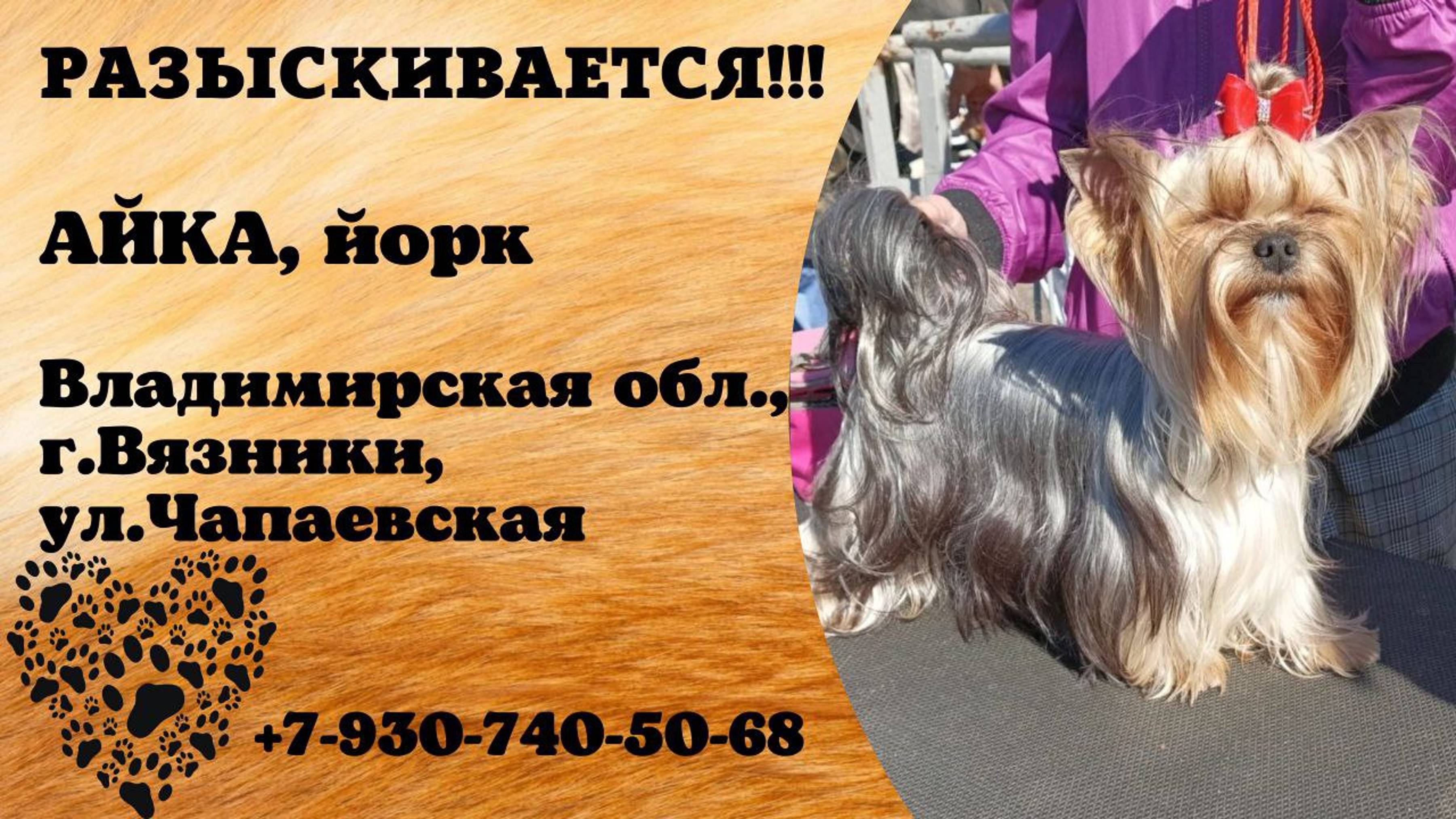 Пропала собака! АЙКА. Йорк. Владимирская обл, г. Вязники