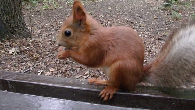 Белка кушает грецкий орех, а потом ещё один и один берёт про запас