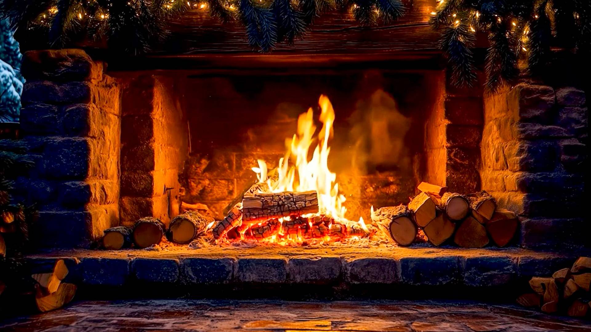 Уютный Рождественский Камин | Звуки Огня и Потрескивание Угольков