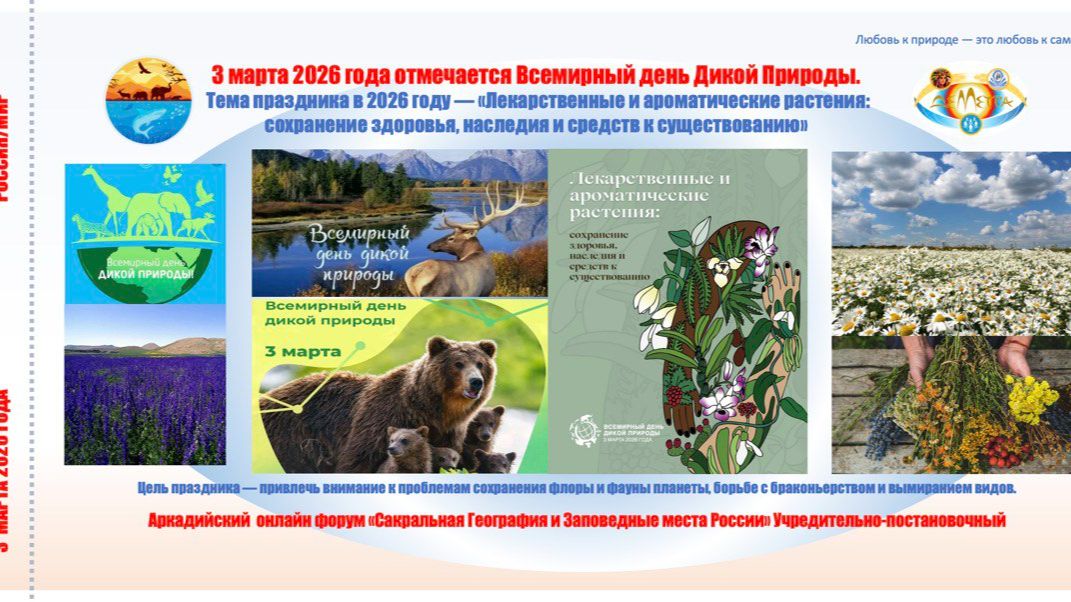 КОНЦЕПЦИЯ ДНЯ: «ТРИ ЗЕЛЕНЫХ МИРА ДИКОЙ ПРИРОДЫ: ДЕРЕВЬЯ – КУСТАРНИКИ – ТРАВЫ: СЕГОДНЯ В ФОКУСЕ ВНИМАНИЯ ТРАВЫ НАШИХ СТЕПЕЙ И ЛУГОВ, ЛЕСНЫХ ПОЛЯН И БОЛОТНЫХ УРОЧИЩ – ЛЕКАРСТВЕННЫЕ, СЪЕДОБНЫЕ И ЯДОВИТЫЕ, ПАСТБИЩА И СЕНОКОСЫ ДЛЯ ПАСТУХОВ И КРЕСТЬЯН, И ЗДЕСЬ ОСОБЫЙ ФОКУС ВНИМАНИЯ В 2026 ГОДУ ПЕРМАНЕНТНОМУ ПАСТБИЩНОМУ ЖИВОТНОВОДСТВУ ПЯТИ ВИДОВ СКОТА КРУГЛОГОДИЧНОГО ВЫПАСА» Главный ожидаемый результат формирование пилотных инновационных кластеров Перманентного Пастбищного Хозяйства, Степного мира Дикой природы, Лекарственных, Съедобных и Ядовитых Дикоросов ПРЕАМБУЛА. Вступительное слово ведущего (академик Н.А. Сорокин) Уважаемые коллеги, друзья, соратники! Сегодня, 3 марта 2026 года, мы проводим четвёртый день нашей Научной Масленицы в рамках Учредительно-постановочного Аркадийского онлайн-форума «Сакральная География и Заповедные места России». И этот день особенный сразу по нескольким причинам. Во-первых, сегодня весь мир отмечает Всемирный день дикой природы, учреждённый ООН. Тема этого года — «Лекарственные и ароматические растения: сохранение здоровья, наследия и средств к существованию» . Это глубоко символично для нас, потому что дикая природа — это не только "где-то далеко", это наши степи, наши луга, наши поляны, наши пастбища. Это то, что нас окружает и кормит. Во-вторых, мы приближаемся к астрономической весне — 20 марта, в 17:46 по московскому времени, Солнце пересечёт небесный экватор, и день сравняется с ночью . Мы на пороге обновления. В-третьих, мы продолжаем Год Докучаева и Год пастбищных угодий, объявленный ООН по инициативе братской Монголии . И в-четвёртых, до 8 Марта — считанные дни. А это значит, что сегодня мы обязаны уделить особое внимание нашим женщинам, девушкам, травницам, хранительницам домашнего очага и лугового знания. Наша сегодняшняя концепция охватывает три зелёных мира дикой природы: мир деревьев, мир кустарников и мир трав. Но сегодня, в соответствии с темой года ООН и нашими приоритетами, мы сосредоточимся именно на травах — травах наших степей, лугов, лесных полян и болотных урочищ. Мы поговорим о травах лекарственных, съедобных и даже ядовитых, о пастбищах и сенокосах, о том, как травы кормят скот и лечат человека. И конечно, особый фокус внимания — перманентное пастбищное животноводство пяти видов скота круглогодичного выпаса, которое невозможно без здорового травостоя. Поэтому сегодняшний форум мы построим как занимательный квест-путешествие по трём мирам, но с углублением в мир трав: МИР МУЖСКОЙ — Пастбища, где пастухи, чабаны, араты, табунщики хранят древнее искусство выпаса пяти видов скота, и где главное богатство — кормовые травы. МИР ЖЕНСКИЙ — Луга и поляны, где травницы собирают лекарственные растения, где природа дарит здоровье и красоту, и где знание трав передаётся из поколения в поколение. МИР ОБЩИЙ — Дикая природа как наш дом, который мы обязаны сохранить для детей и внуков, включая всё разнообразие деревьев, кустарников и трав. И вести нас по этому маршруту будет сегодня почётный академический эксперт — Сергей Вячеславович Левыкин, профессор РАН, доктор географических наук, представитель Института степи УрО РАН из города Оренбурга, соорганизатор Международного форума «Степи Северной Евразии» . Сергей Вячеславович — человек, который знает о степи всё: от почвенных горизонтов до 