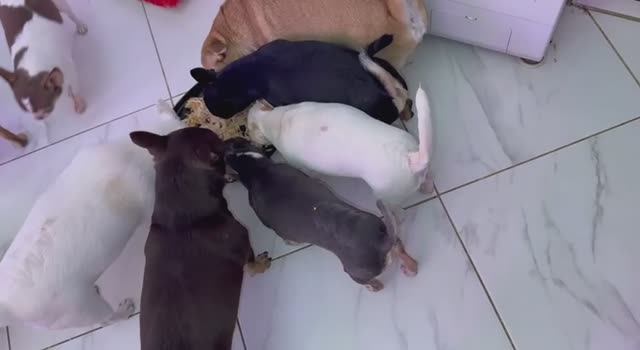 У наших хвостатых малышей пришло время обеда.
