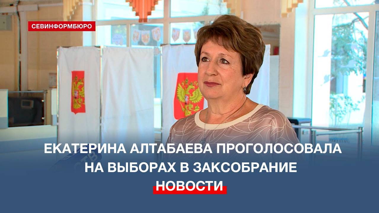 Сенатор Российской Федерации Екатерина Алтабаева проголосовала на выборах в Законодательное собрание Севастополя третьего созыва. Свой голос она отдала на избирательном участке в Нахимовском районе нашего города. Подписывайтесь на наш Телеграм-канал: https://t.me/nts_novosti Смотрите новости Севастополя и Крыма на сайте НТС: http://nts-tv.com В нашей группе "ВКонтакте": https://vk.com/ntssevastopol На странице в "Одноклассниках": https://ok.ru/ntssevastopol