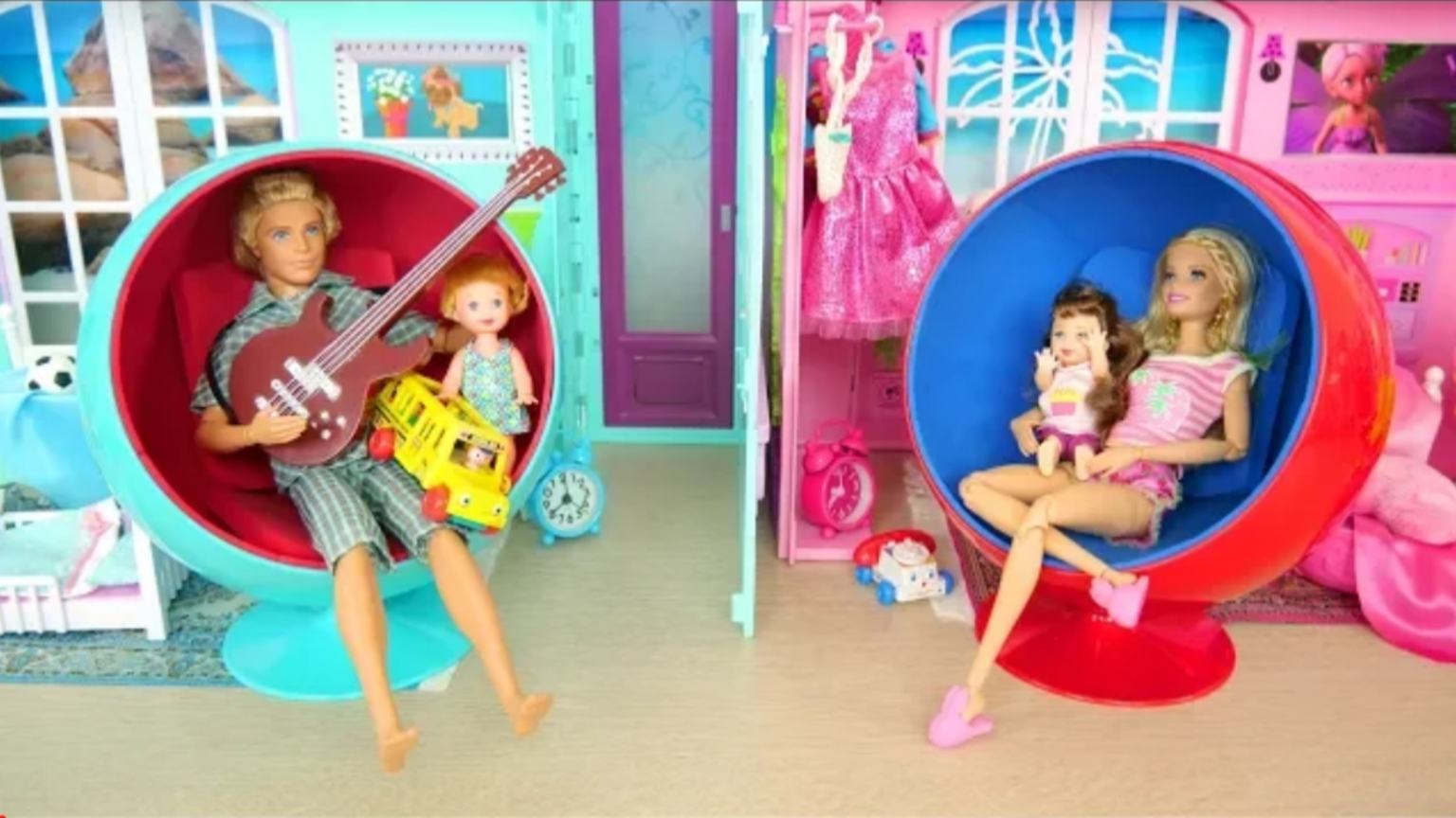 Куколный домик блезницы Барби и ее сестра Келли утром кукольном домики