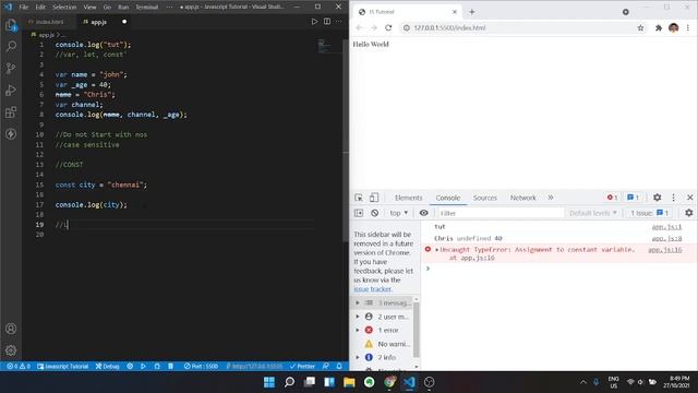 Javascript Tutorial 02 | In Tamil | var, let & const...