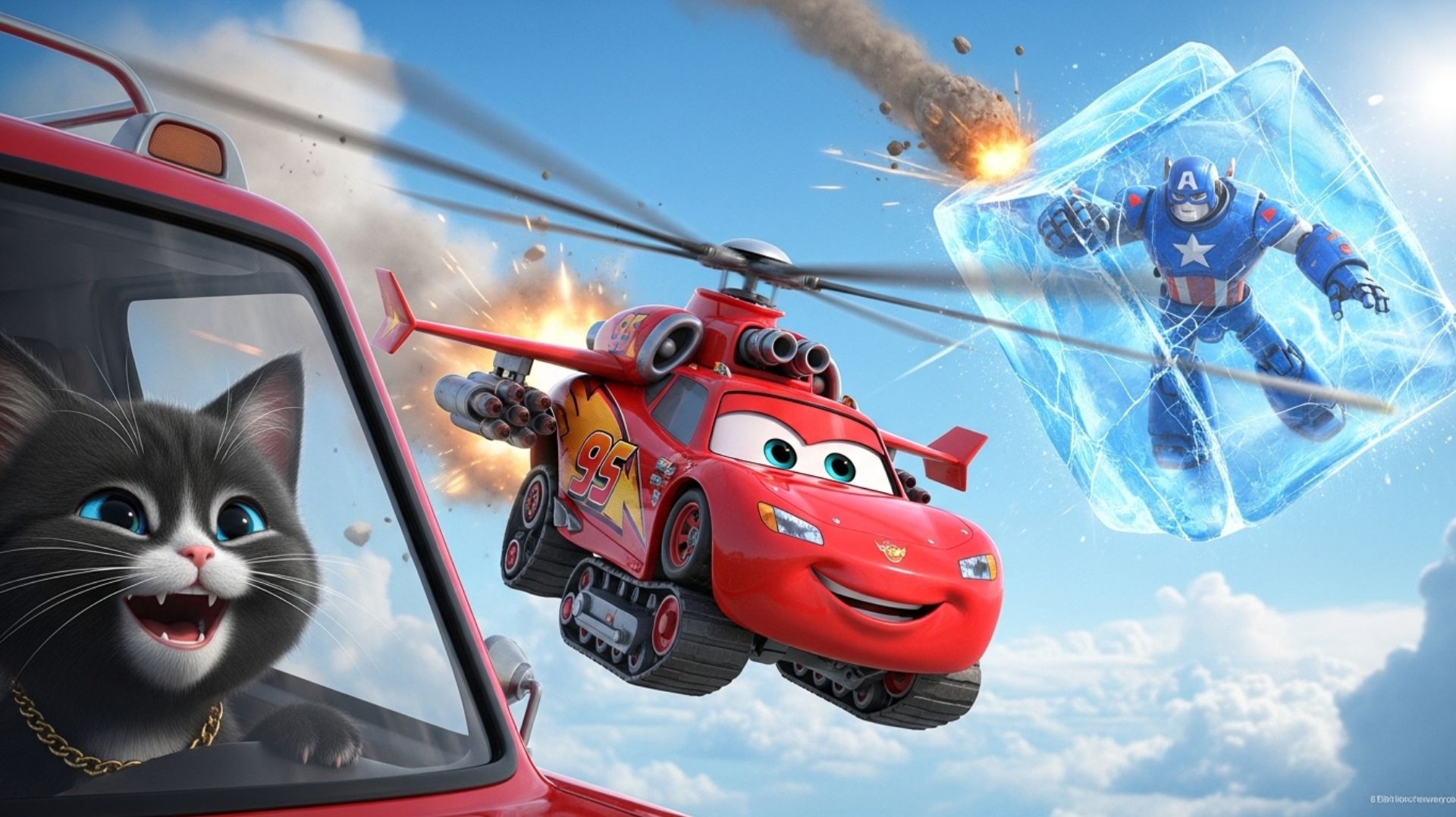 Эпическая битва Вертолета Маккуина с Серым котом в 2026 году Котик сел за штурвал супер-коптера и устроил настоящий воздушный бой! 😹🚁 Робот атакует ракетами, коптер отвечает лазером, кнопка “контратака” нажата — и начинается полный экшен! В финале робот замораживается в огромном кубе льда, а затем… прилетает гигантский камень 😳💥 Смотри до конца, потому что развязка — неожиданная! Если хочешь продолжение и новые серии про котика — ставь лайк ❤️ и пиши в комментариях, что добавить дальше!