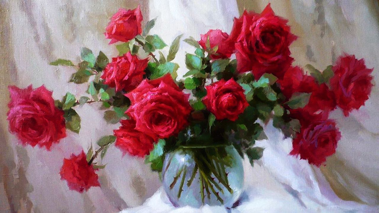 Дивные розы в натюрмортах художника Юрия Николаева.