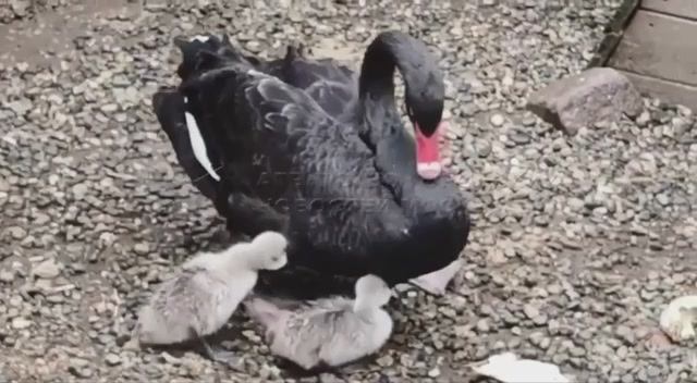 В Московском зоопарке вылупились малыши черных лебедей.