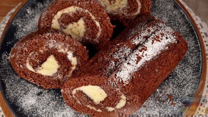 Бисквитная основа и нежнейший крем. ШОКОЛАДНЫЙ БИСКВИТНЫЙ РУЛЕТ