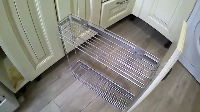 Как снять и поставить на место выдвижную бутылочницу кухни.