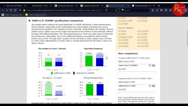 #tech #praveentechtips on my youtube channel i upload daily tech news telugu easy to understand intel https://ark.intel.com/content/www/us/en/ark/products/199278/intel-core-i5-10400f-processor-12m-cache-up-to-4-30-ghz.html amd https://www.amd.com/en/products/cpu/amd-ryzen-5-3600 amazon https://www.amazon.in/Intel%C2%AE-CoreTM-i5-10400F-Processor-Cache/dp/B086MHSTWN https://www.amazon.in/AMD-Ryzen-3600-Processor-100000031BOX/dp/B07STGGQ18 benchmark website https://www.cpu-world.com/Compare/66/AMD_Ryzen_5_3600_vs_Intel_Core_i5_i5-10400F.html https://cpu.userbenchmark.com/Compare/Intel-Core-i5-10400F-vs-AMD-Ryzen-5-3600/4079vs4040 youtube sub link https://www.youtube.com/channel/UCoBsFDhrtoZHfh12sObsLRA?sub_confirmation=1 facebook : https://www.facebook.com/praveentechtipstelugu