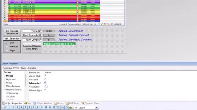 WinCC SCADA - Регистрация действий пользователя во время выполнения - опционально с помощью скриптов