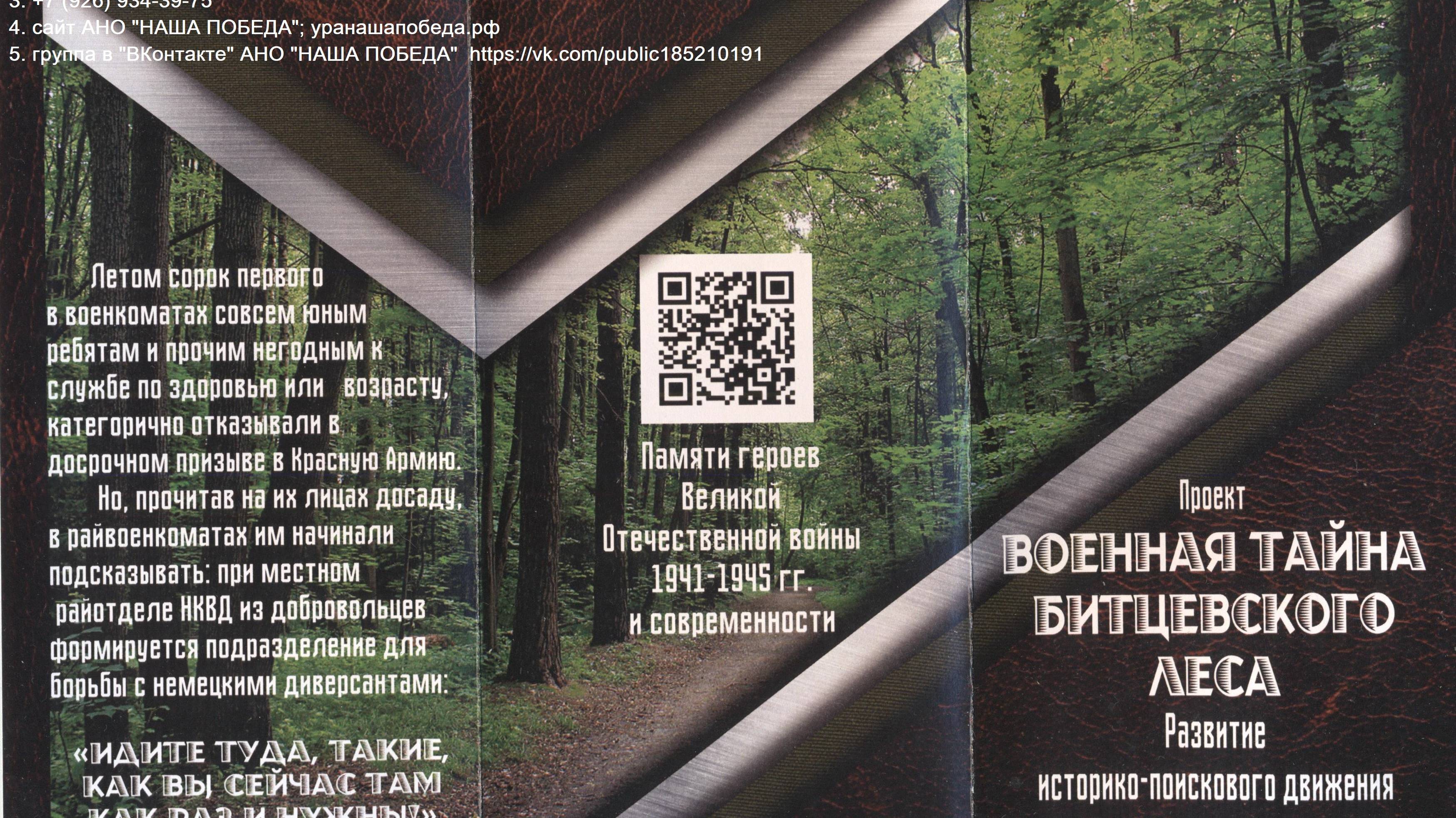 Экскурсия 18 09 2025 с 13 00 ПОИСКОВЫЙ ПРОЕКТ ВОЕННАЯ ТАЙНА БИТЦЕВСКОГО ЛЕСА АНО НАША ПОБЕДА