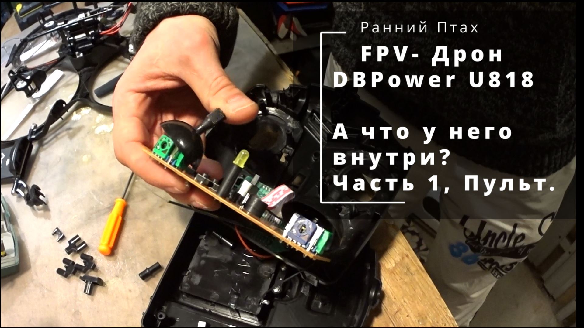 Техничка. Вивисекция пульта дрона в попытках найти причину затупления откликам управления. Испытания в пространствах различной степени замкнутости. Недопонятки и выводы. Как нам достался этот дрон: ДарЁному дронУ в аккУмы не смотрят. DBpower UdiRC U818A FPV Drone. https://youtu.be/wiSYYcnz0r4 Часть 1 в попытках разобраться: FPV-Дрон DBPower U818A. Что у него внутри? Часть 1. Пульт и коробка. Почему тупим? https://youtu.be/0QdTQVzezoI Часть 2 в попытках сделать хоть что-то FPV-Дрон DBPower U818A. Что у него внутри? Часть 2. Разборка корпуса и камеры. Допайка антенны(?) https://youtu.be/IyYpfaZG05c Часть 3 в попытках не протерять самовольный дрон: FPV-Дрон DBPower U818A. Часть 3. В попытках улететь. https://youtu.be/192IdNOvMcA Live-канал "Ранний.Пташк.": https://www.youtube.com/channel/UClt8cCh_mtPQ0IG6grtnEoQ Канал "ОкруговЕдение" о путешествиях и посещениях: https://www.youtube.com/channel/UCrKtHhQFoikzQck0D45NSFw/ 00:00 Дратути, уважаемые 00:17 Отмазка и немного о. 03:30 Вскрытие показывает... 07:20 Пробы и мыканья о стену и во тьме 12:38 Залёты по коробке
