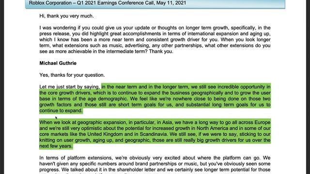 This is a stock analysis video about Roblox stock ($RBLX). Roblox went public through a directing listing in March this year, and the stock has already increased over 17.74% since March. You may ask: Is Roblox (RBLX) stock a great long-term growth stock? What is Roblox's long-term growth prospect? What are the risks? What is Roblox's fair intrinsic value per share? Is Roblox stock a buy now or wait? I will answer these questions in this video by covering these topics: What is Roblox’s business model? 1:24 Roblox’s two main long-term growth catalysts 5:52 Roblox’s risk #1: Competition 10:31 Roblox's risk #2: May not appeal to older gamers 11:21 Roblox's risk #3: Slowing growth? 11:52 What is Roblox’s fair intrinsic value per share? 12:34 Am I buying Roblox stock? 15:10 ???For those of you who want and can support our channel, here is how you can help. Here is my Patreon Blog: https://www.patreon.com/IntelligentInvestorChannel Remember to always do your research and do your extra due diligence first! #robloxstock #robloxstockanalysis #robloxstockprediction #roblox #rblxstock #growthstock #stocks #investing Disclaimer: All content on this channel is for informational and entertainment purposes only. They should not be construed as professional financial advice. If you need such advice, please consult a licensed financial or tax advisor. You will also need to do your research. No guarantee is given regarding the accuracy of the information on this channel.